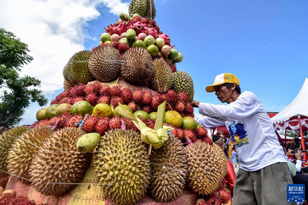 7月6日,在印度尼西亞中蘇拉威西省帕里吉莫烏通縣舉辦的榴蓮節上,一名男子為展出榴蓮做準備。