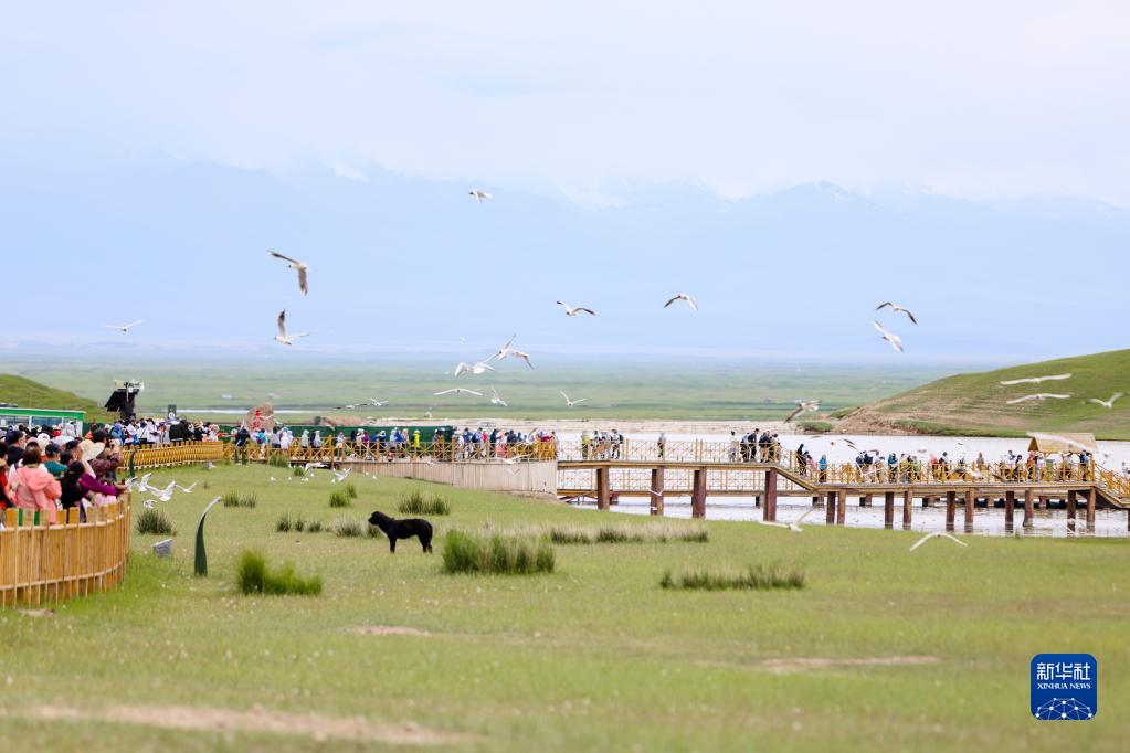 游客在巴音布魯克天鵝湖景區參觀(guān)(7月6日攝)。