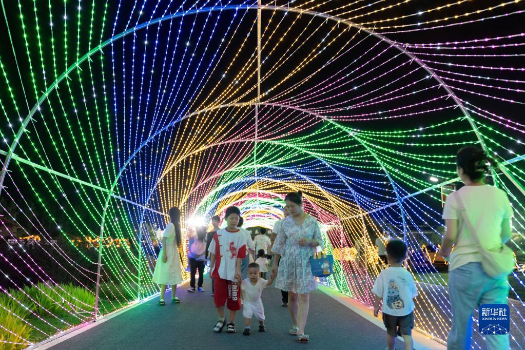 暑期,安徽省合肥市肥東縣橋頭集鎮歡樂(lè )森林景區內游人如織,該景區7月8日起至8月31日策劃炫彩燈展,結合美食節等夜間活動(dòng),點(diǎn)燃了酷暑之下的鄉村游新熱點(diǎn)。
