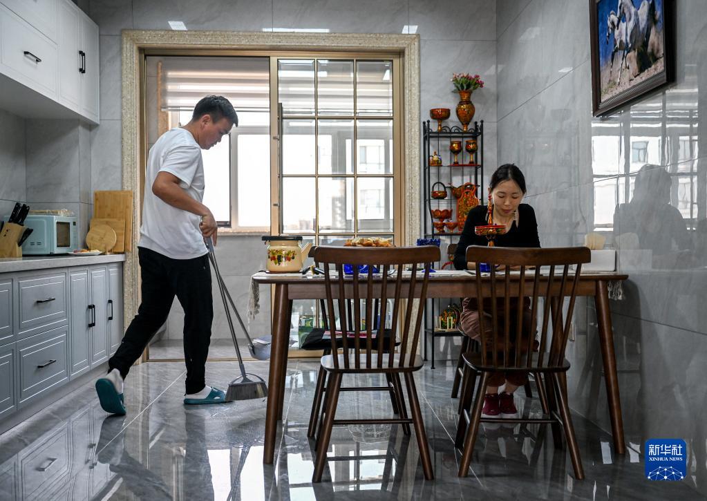 7月2日,巴達瑪斯仁(左)在家中打掃衛生。