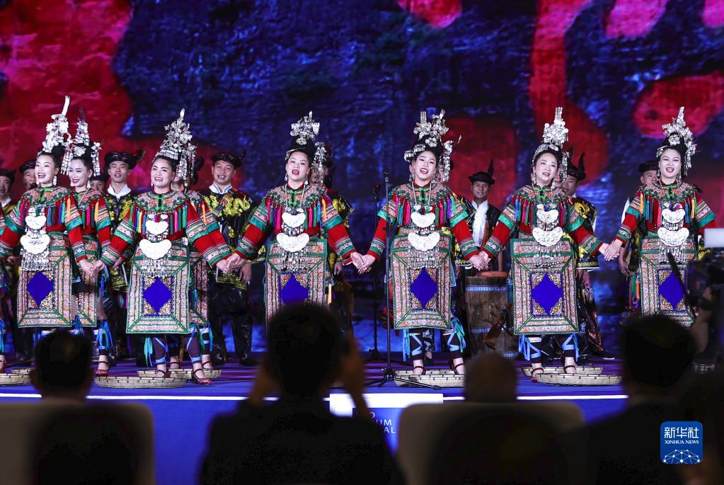 7月9日,演員在2023年生態(tài)文明貴陽(yáng)國際論壇閉幕式上演唱侗族大歌。