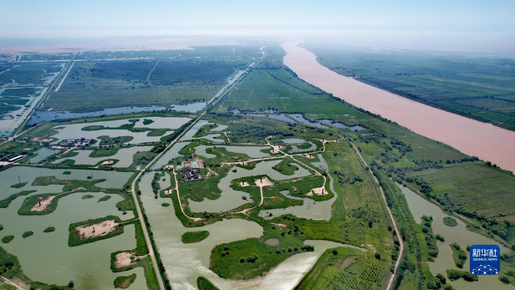 2023年6月30日拍攝的黃河與黃河三角洲濕地(無(wú)人機照片)。