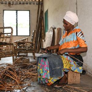 6月21日,在位于布隆迪經(jīng)濟首都布瓊布拉的卡蒙蓋手工業(yè)培訓中心,學(xué)員在生產(chǎn)車(chē)間制作藤編產(chǎn)品。