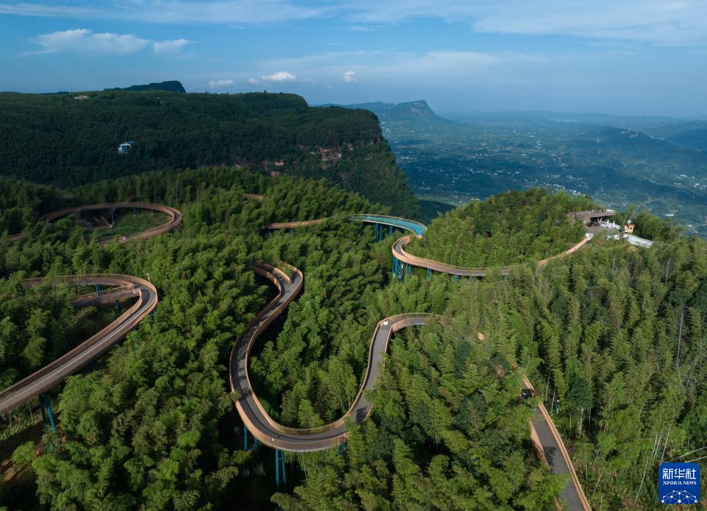 這是6月30日在四川省宜賓市蜀南竹海拍攝的竹尖漫步步行走廊(無(wú)人機照片)。