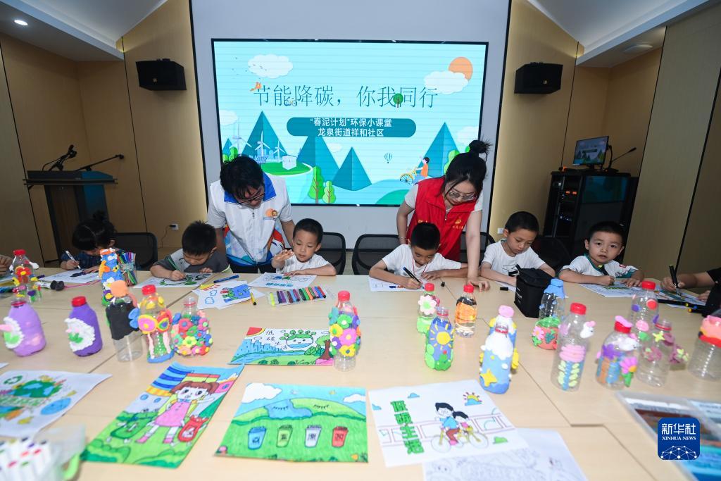 7月11日,小朋友們在浙江省湖州市吳興區龍泉街道祥和社區參加低碳主題繪畫(huà)活動(dòng)。