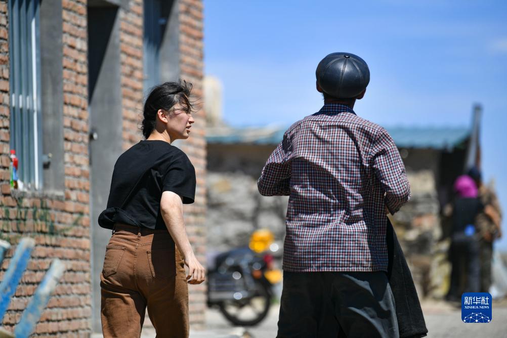 哈布得拉什么出發(fā)在即,小女兒昆樹(shù)阿克在一旁緊跟著(zhù)和父親聊天(7月3日攝)。八月中旬,就讀于新疆醫科大學(xué)的昆樹(shù)阿克就要返回烏魯木齊開(kāi)始大二新學(xué)期,要寒假回家時(shí)才能再見(jiàn)到父親。