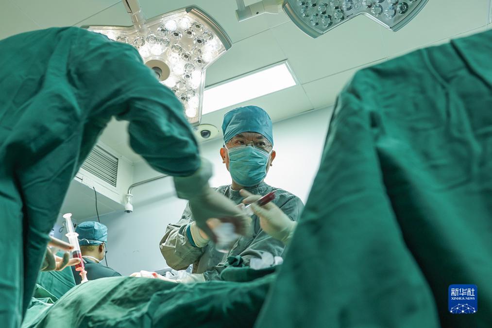 7月6日,黃曉軍在北京大學(xué)人民醫院手術(shù)室采集供者的骨髓干細胞。