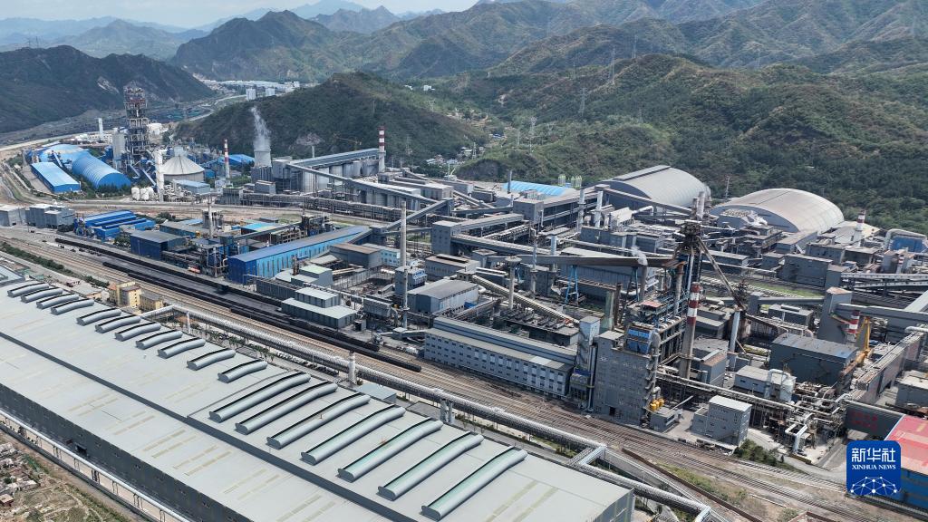 這是7月11日拍攝的承德市鷹手營(yíng)子礦區一家無(wú)縫鋼管生產(chǎn)企業(yè)(無(wú)人機照片)。