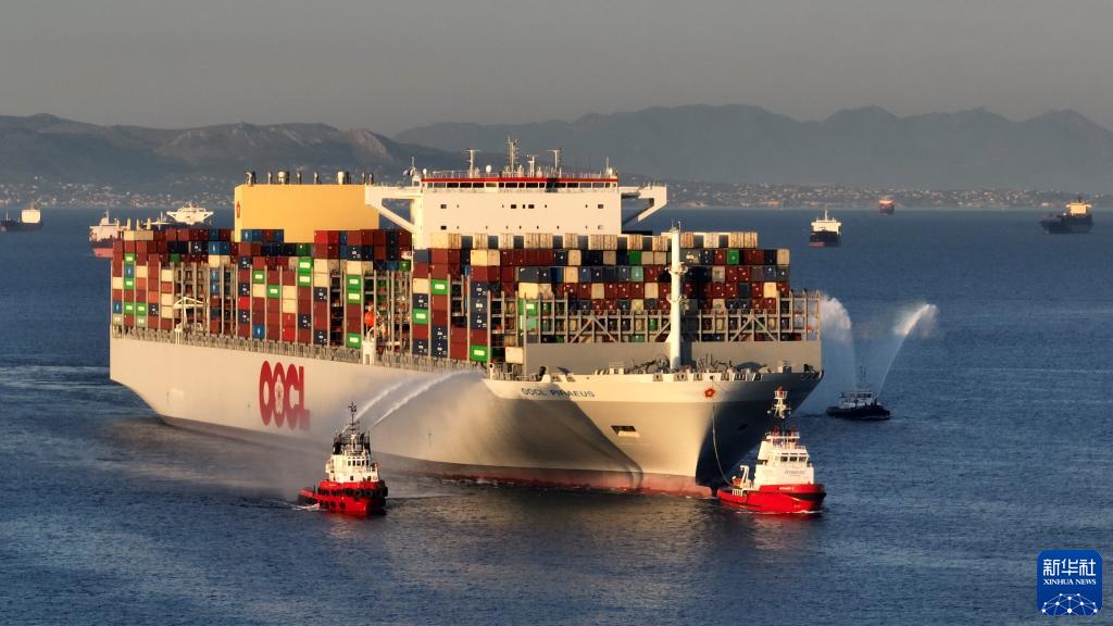 7月10日,“東方比雷埃夫斯”號大型集裝箱船抵達希臘最大港口比雷埃夫斯。