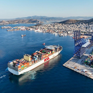 “東方比雷埃夫斯”號大型集裝箱船首航??肯ED比雷埃夫斯港