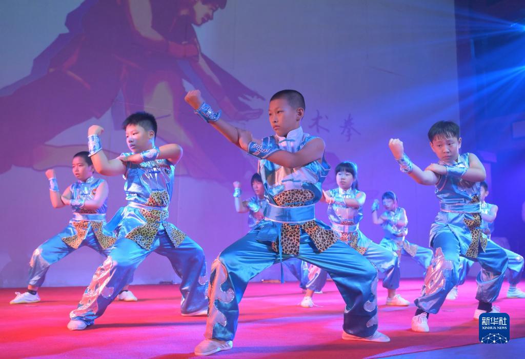7月11日,小朋友表演國家級非物質(zhì)文化遺產(chǎn)“地術(shù)拳”。