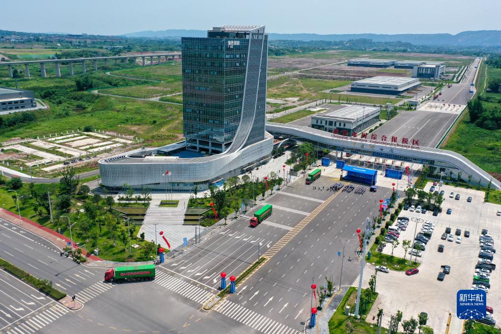 7月11日,重慶永川綜合保稅區首貨出區暨長(cháng)城汽車(chē)KD件出口始發(fā)車(chē)順利發(fā)車(chē)(無(wú)人機照片)。
