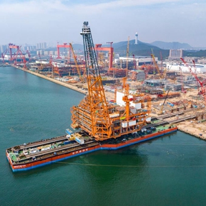 渤海首個(gè)千億方大氣田一期項目中心平臺在青島裝船