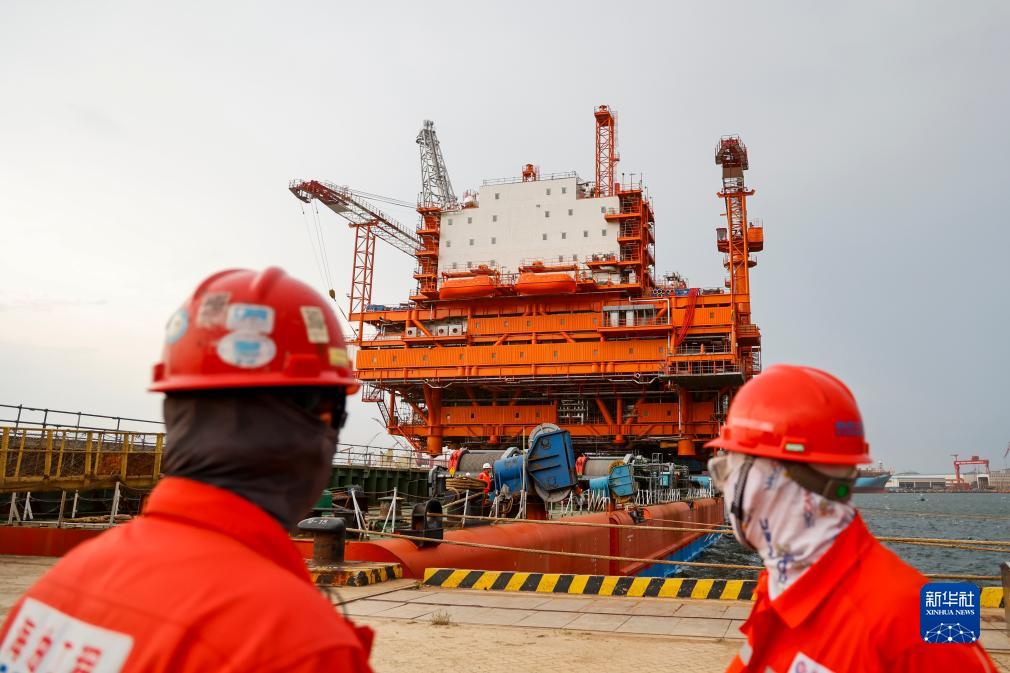 7月10日,渤中19-6凝析氣田一期項目中心平臺在青島成功裝船,即將奔赴渤海西部海域,進(jìn)入海上安裝和聯(lián)調階段。新華社發(fā)(杜鵬輝 攝)