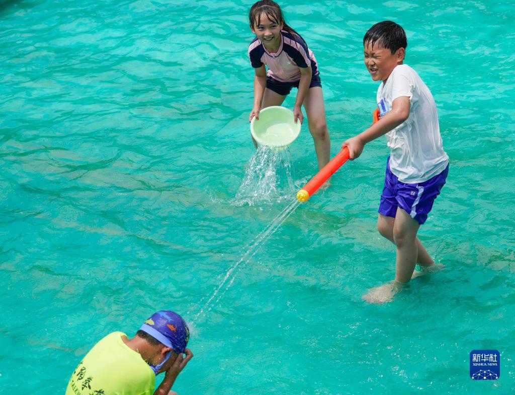 當日是入伏第一天,人們來(lái)到海邊、泳池和水上樂(lè )園戲水消暑,暢享清涼。
