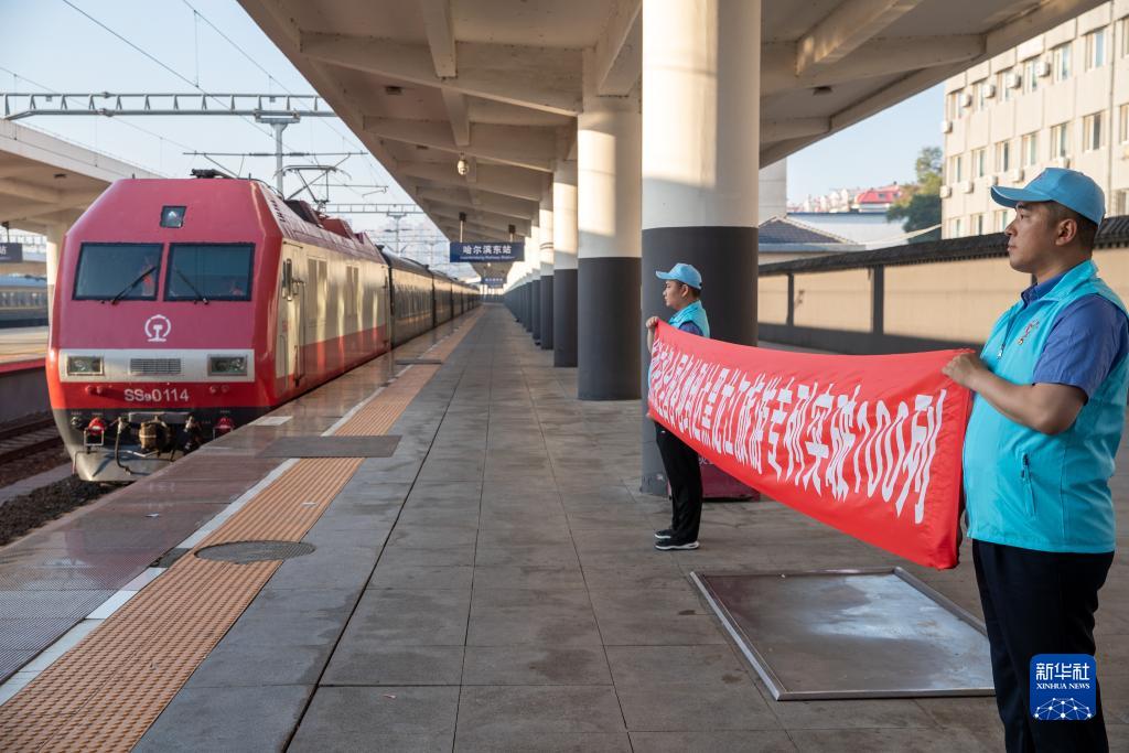 7月12日,Y449次旅游專(zhuān)列駛進(jìn)哈爾濱東站。