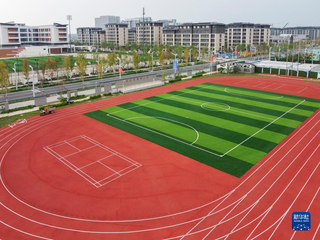 這是7月11日拍攝的雄安史家胡同小學(xué)操場(chǎng)(無(wú)人機照片)。