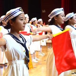 7月12日,在2023年航??破障牧顮I(yíng)開(kāi)營(yíng)儀式上,學(xué)生表演節目。