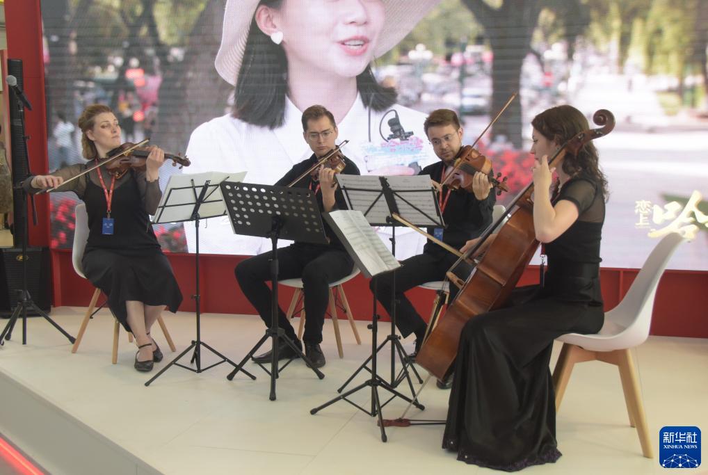 7月11日,在俄羅斯葉卡捷琳堡舉辦的第七屆中俄博覽會(huì )上,演出人員演奏《莫斯科郊外的晚上》。