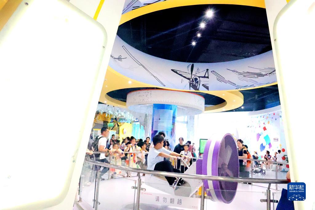 7月12日,小朋友在浙江省科技館里參觀(guān)體驗。