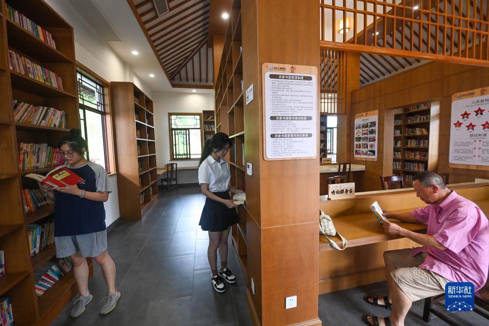 7月13日,在上田村農家書(shū)屋,村民在法律圖書(shū)角閱讀。上田村專(zhuān)門(mén)設立農家書(shū)屋法律圖書(shū)角,內容涵蓋法律書(shū)籍、法治宣傳漫畫(huà)、法治期刊等。