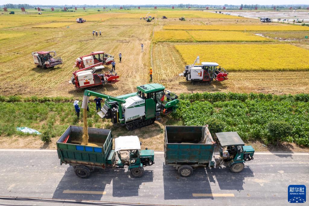 當日,湖南省常德市農業(yè)農村部門(mén)在漢壽縣巖汪湖鎮武竺山村舉行水稻夏收夏種機收減損現場(chǎng)觀(guān)摩活動(dòng),通過(guò)開(kāi)展觀(guān)摩夏收夏種的勞作畫(huà)面以及水稻機收減損技能比武等方式,引導廣大農民和農機手在生產(chǎn)實(shí)踐中精操作、比技能,全力保障夏糧豐產(chǎn)豐收、顆粒歸倉。