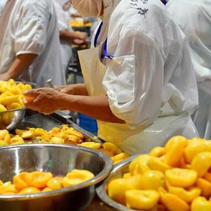 7月13日,工人在秭歸縣屈姑國際農業(yè)集團黃桃深加工車(chē)間生產(chǎn)線(xiàn)上對黃桃進(jìn)行去皮處理。