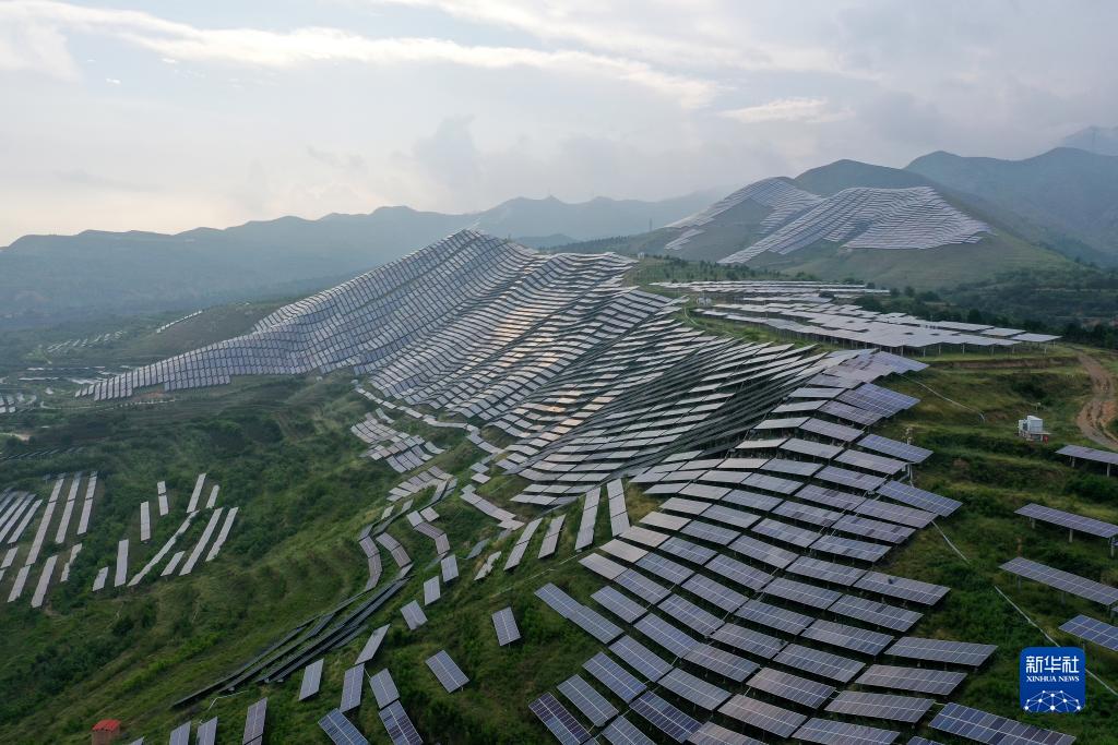 在山西省芮城縣學(xué)張鄉拍攝的光伏電站(無(wú)人機照片,7月12日攝)。