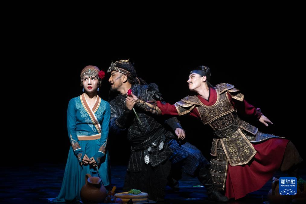 當日,舞劇《五星出東方》在武漢市湖北劇院上演。該劇的構想源于從我國新疆和田尼雅遺址出土的國家一級文物“五星出東方利中國”漢代織錦護臂。新華社發(fā)(杜子璇攝)