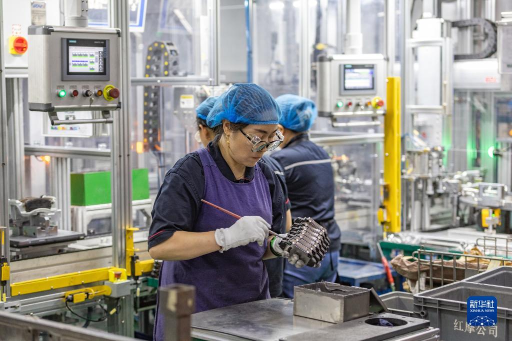 7月13日,工作人員在南方天合底盤(pán)系統有限公司車(chē)間內作業(yè)。