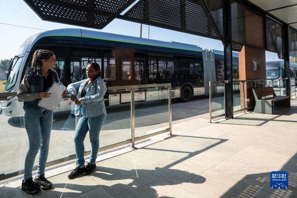 7月12日,在巴西圣保羅州圣若澤杜斯坎普斯,市民在快速公交系統“綠線(xiàn)”始發(fā)站等車(chē)。