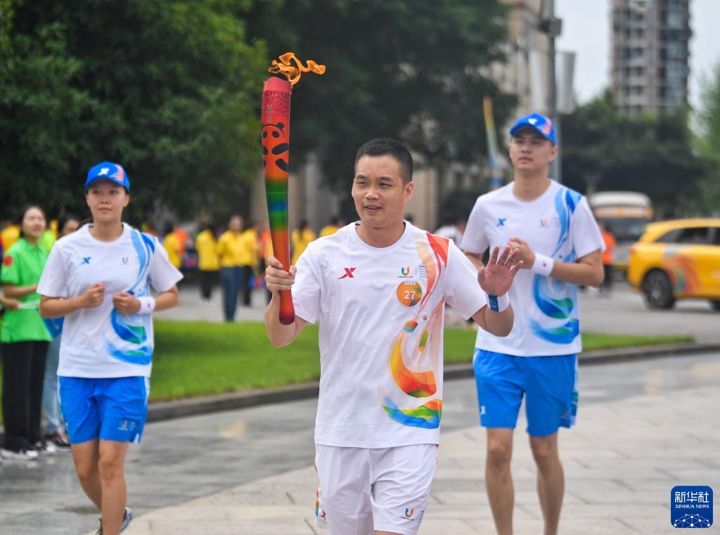 當日,成都第31屆世界大學(xué)生夏季運動(dòng)會(huì )火炬傳遞在西南財經(jīng)大學(xué)(柳林校區)校園內舉行。