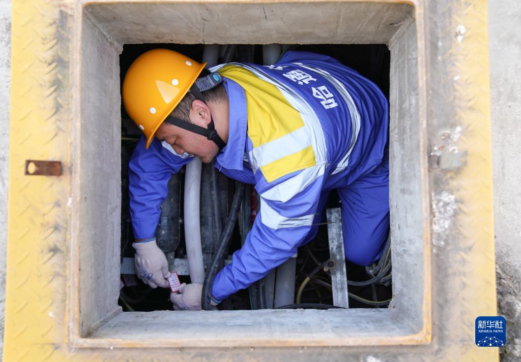 7月13日,位于肇東市的哈齊高鐵12號基站鐵路通信光纜井里,魏巍對基站地下的通信光纜進(jìn)行檢修維護作業(yè)。