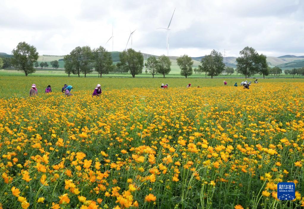 河北沽源:金蓮花采摘忙