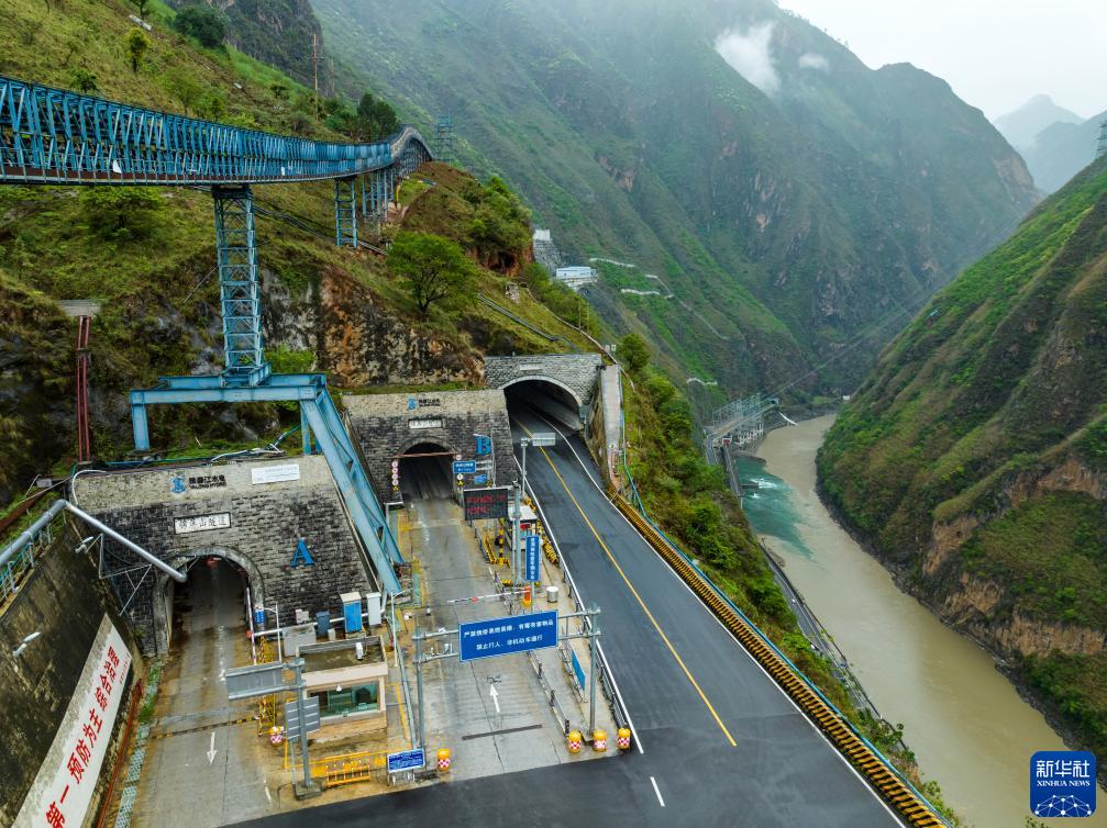 這是7月4日拍攝的中國錦屏地下實(shí)驗室所在的錦屏山隧道口以及旁邊的雅礱江(無(wú)人機照片)。新華社記者 沈伯韓 攝