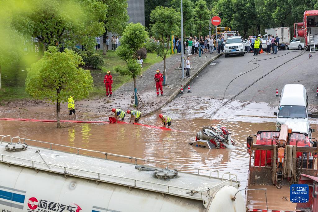 7月14日,在重慶市萬(wàn)州區江南新區,排水機器人在進(jìn)行排水搶險作業(yè)。