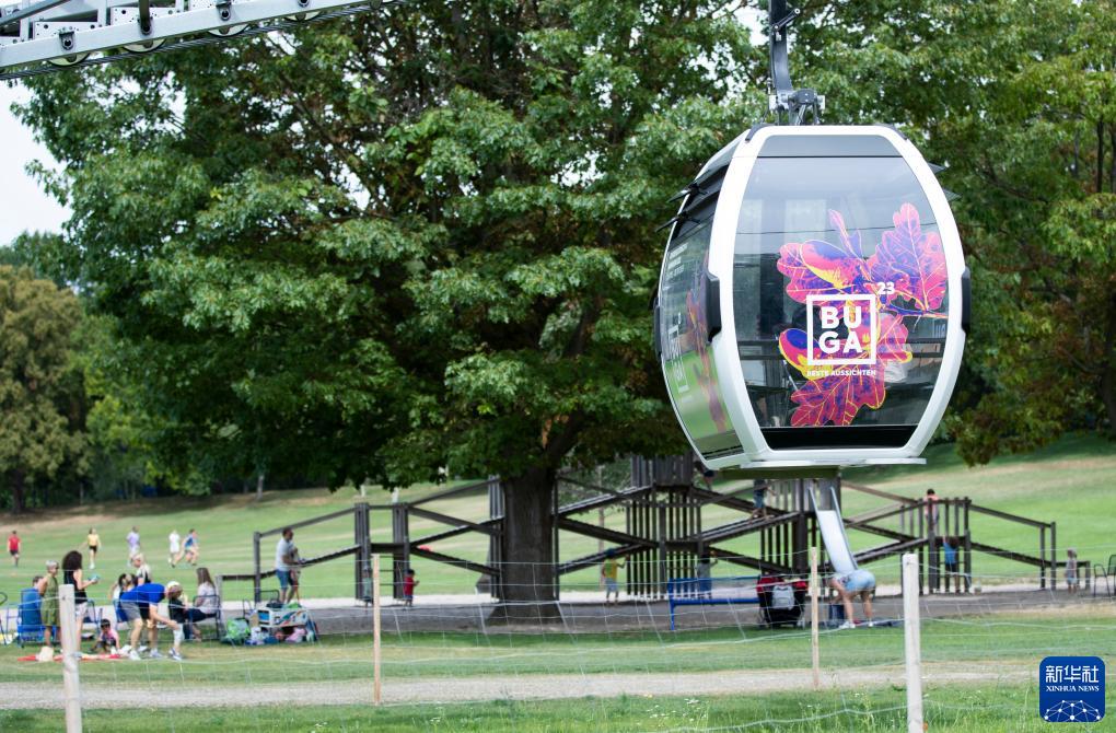 7月14日,游客在德國曼海姆的路易森公園參觀(guān)聯(lián)邦園藝展。