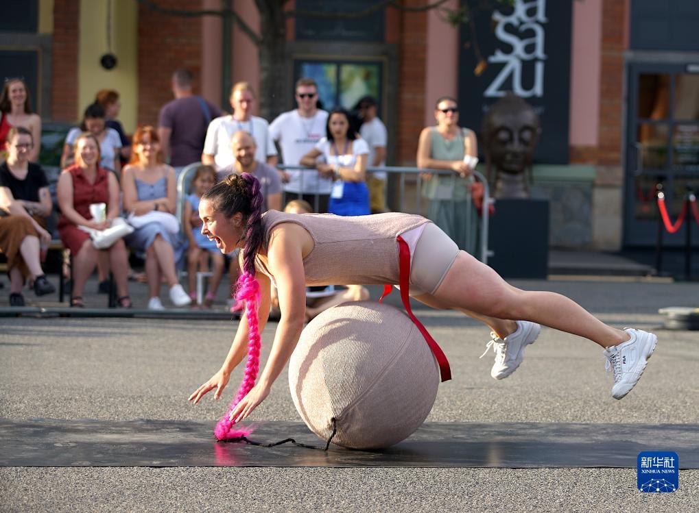 7月14日,藝術(shù)工作者在捷克首都布拉格街頭戲劇節上表演。