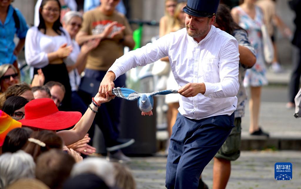 7月14日,藝術(shù)工作者在捷克首都布拉格街頭戲劇節上表演。