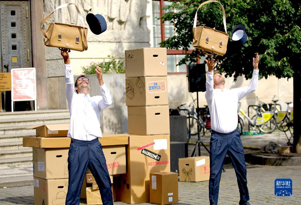 7月14日,藝術(shù)工作者在捷克首都布拉格街頭戲劇節上表演。