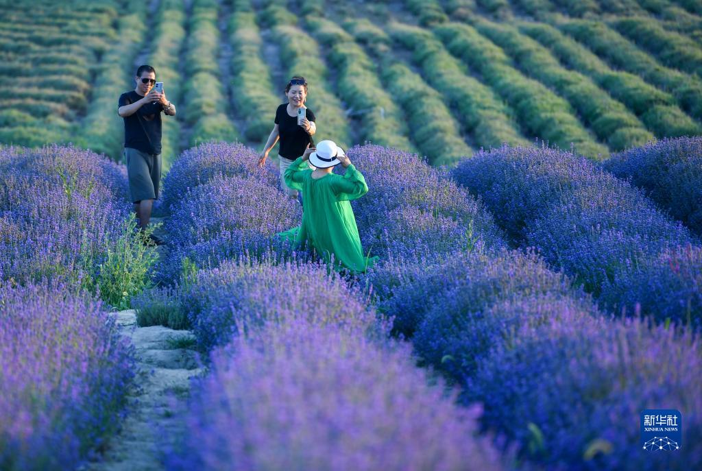 夏日時(shí)節,新疆伊犁哈薩克自治州霍城縣蘆草溝鎮四宮村的萬(wàn)畝薰衣草花海漸次開(kāi)放,吸引眾多游客前來(lái)觀(guān)賞。