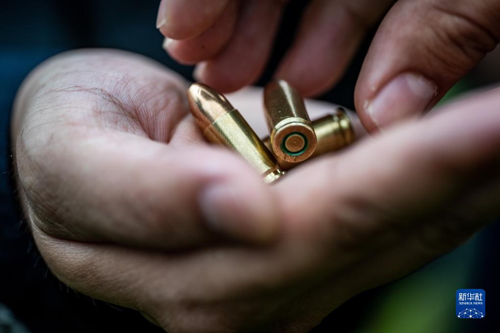 7月13日,尹銘燕在射擊訓練開(kāi)始前領(lǐng)取子彈。