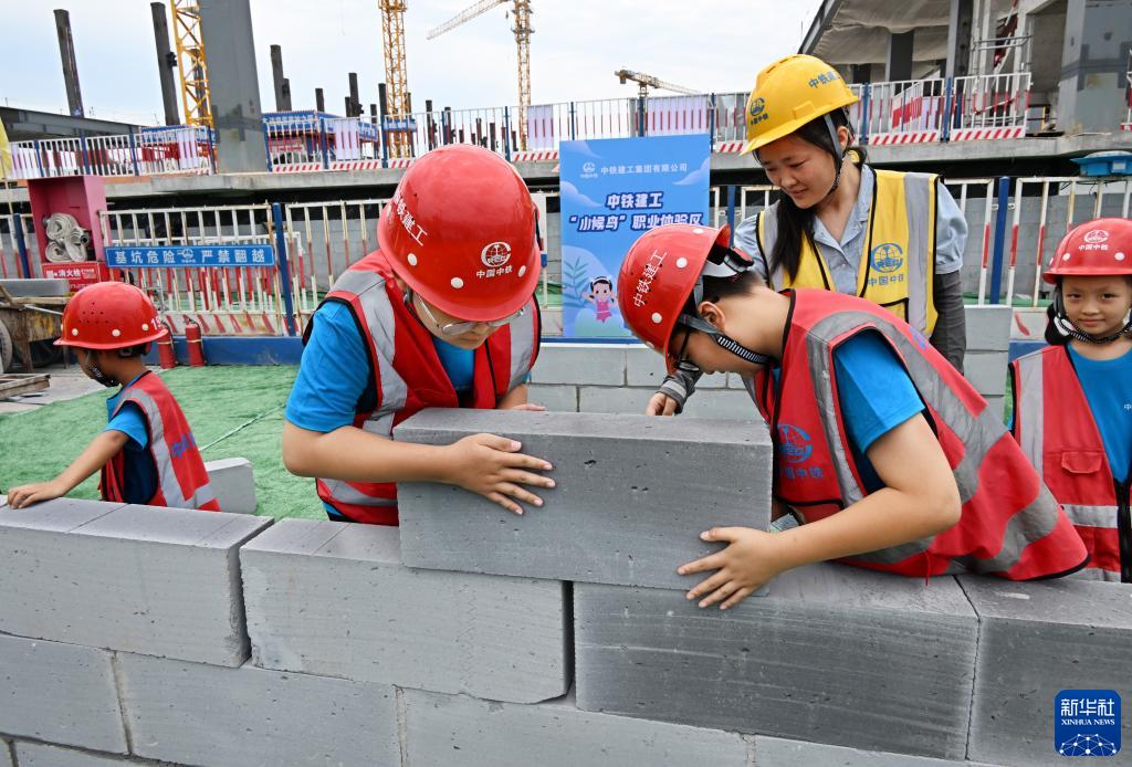 7月15日,在山東青島中鐵建工上合大廈建筑工地,“小候鳥(niǎo)”參加職業(yè)體驗活動(dòng)。