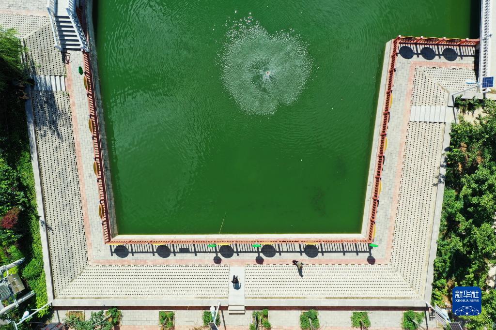 河北省涿州市東仙坡鎮西仙坡村由垃圾坑塘經(jīng)過(guò)治理建成的游園(7月16日攝,無(wú)人機照片)。