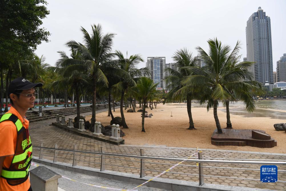 7月17日,在廣東湛江金沙灣海濱浴場(chǎng),保安在已關(guān)閉的區域執勤。