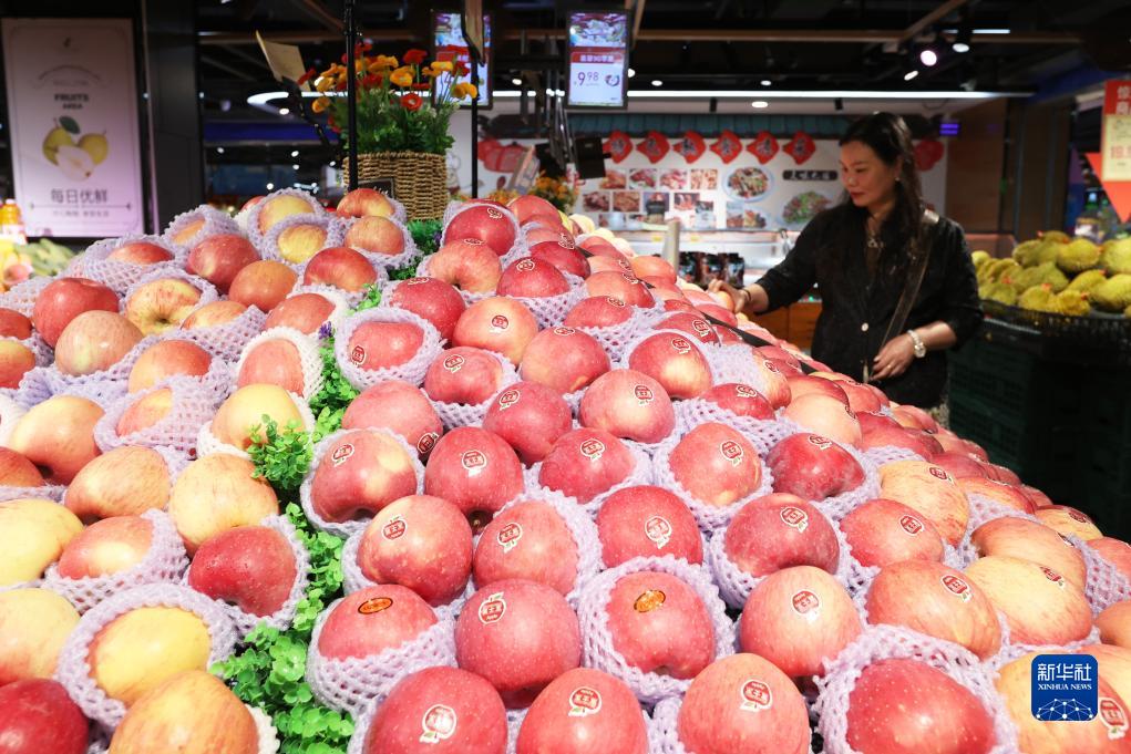 消費者在貴州省岑鞏縣一家超市內選購水果(6月9日攝)。