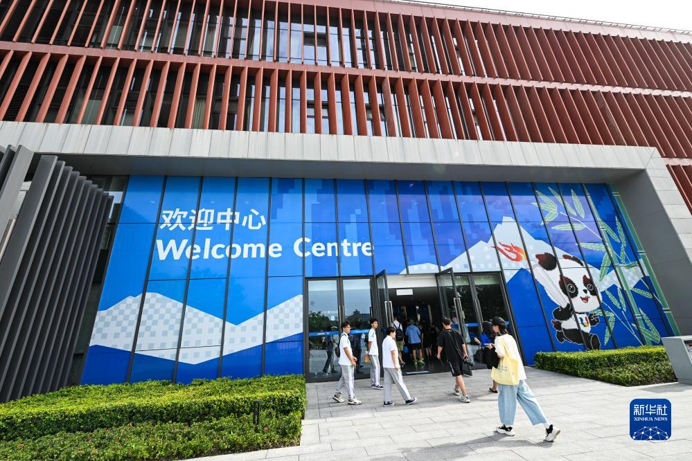 這是7月15日拍攝的大運村歡迎中心。