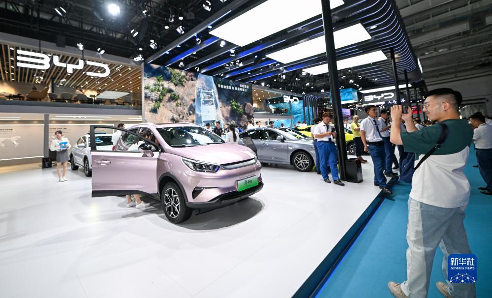 7月17日,觀(guān)眾在長(cháng)春汽博會(huì )比亞迪品牌汽車(chē)展區參觀(guān)。