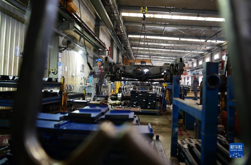 7月17日,中車(chē)齊車(chē)集團石家莊公司的工人在轉向架組裝車(chē)間工作。