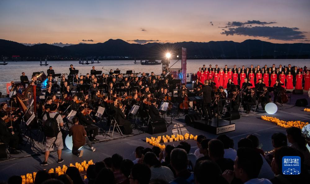伴著(zhù)晚霞,第七屆聶耳音樂(lè )周昆明分會(huì )場(chǎng)開(kāi)幕式在滇池畔舉行(7月17日攝)。